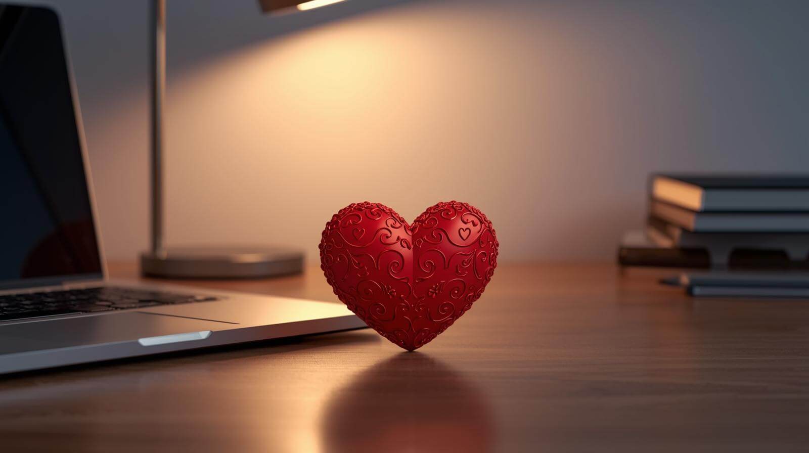valentines day heart at a work desk
